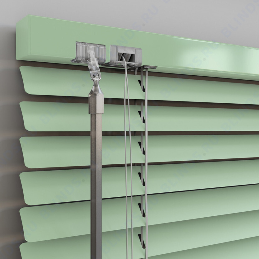 Ламели жалюзи выполнены из алюминия, покрытого полимерной эмалью. Не деформируются от нагрева и не выцветают от солнца.